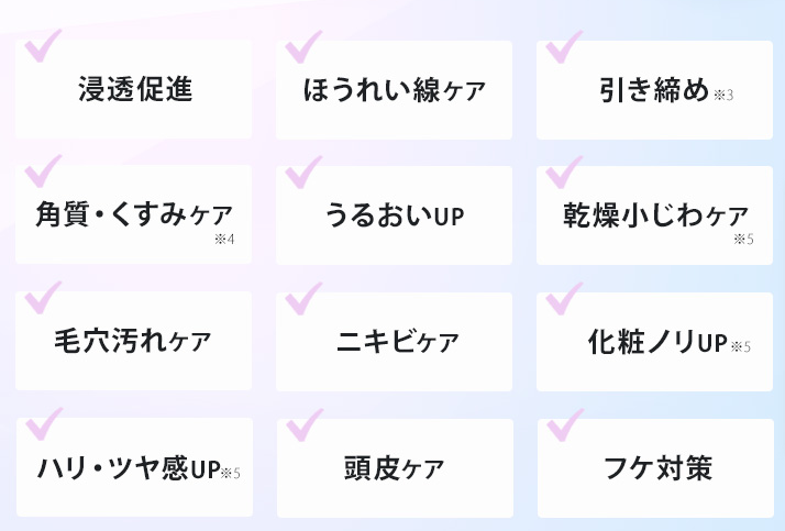 肌をやわらげ、くすみをとることにより肌のきめが整い